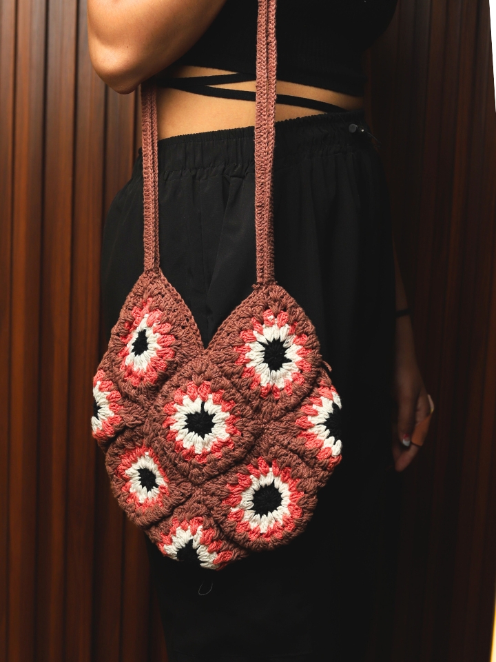 Add a touch of charm to your everyday style with this beautiful handcrafted multicolored crochet handbag. Made from 100% pure cotton, this bohemian-style bag is soft, lightweight, and a true statement piece. Designed with eye-catching floral patterns in vibrant colors, it perfectly complements your casual, festive, or beach-day outfits.
