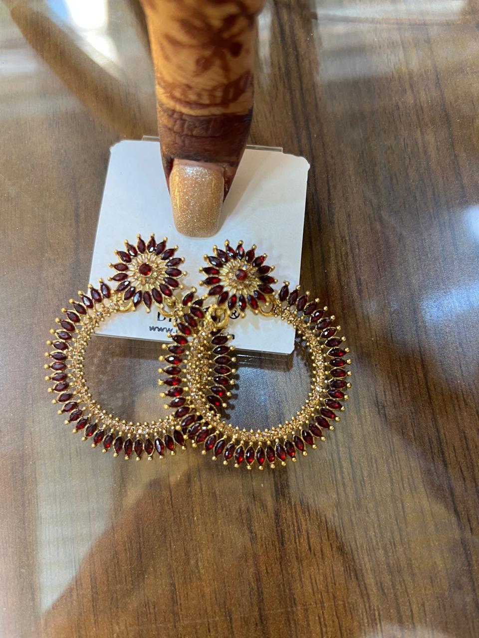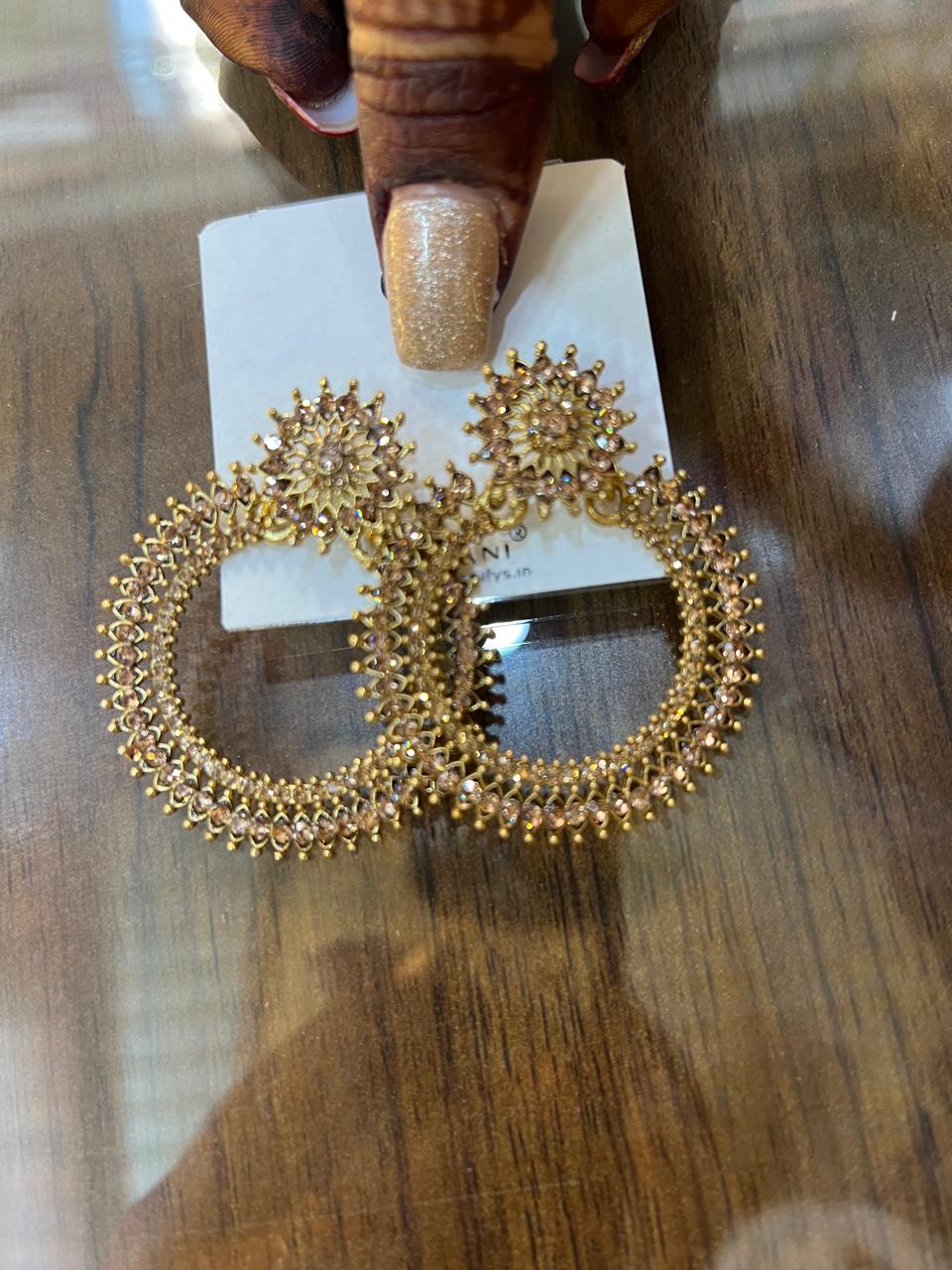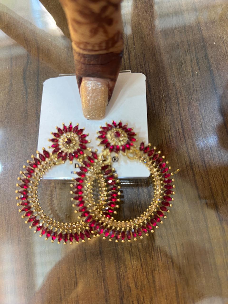 Add a regal touch to your look with these Royal Blue & Gold Beaded Hoop Earrings. Expertly handcrafted, they feature intricate golden wire detailing adorned with radiant blue beads arranged in a floral-inspired circular design. Perfect for festive occasions or elegant evenings, these earrings blend traditional artistry with modern sophistication. Lightweight and eye-catching, they’re a must-have accessory for anyone who loves statement jewelry with a touch of glamour.